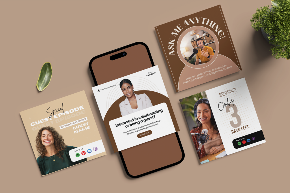 - Grow Your Podcast: Promote new episodes, upcoming guests, and teasers in a visually appealing way that drives traffic to your show.